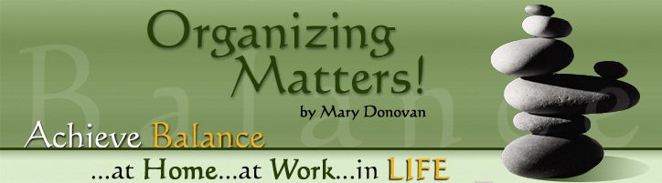 I once told a client that I stored my weekly grocery store circulars on top of my microwave. She exclaimed, "You mean you don't have them organized?" I replied that they were, indeed, organized. They were current (new circulars replaced old ones, which were recycled) and I could find them when I needed them. Just because they were in sight didn't mean that they weren't organized. She breathed a sigh of relief upon hearing this. She already had a great system for her mail (all outgoing mail was propped against the TV and was placed in the mailbox when she went out the door each morning) but thought that since the mail was out in plain view that it wasn't "organized". It is, in fact, a great system for tracking incoming and outgoing mail, as long as she doesn't mind looking at it, which she doesn't.